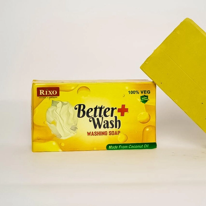Introducing Rixo Washing Soap - 200 gm, the perfect companion for your laundry needs. Formulated with natural ingredients, this highly effective washing soap effortlessly cuts through tough stains while being gentle on your fabrics. Its refreshing fragrance leaves your clothes smelling delightful, providing a clean you can feel confident in. Whether you're washing whites, colors, or delicates, Rixo ensures your laundry comes out fresh and vibrant every time.
